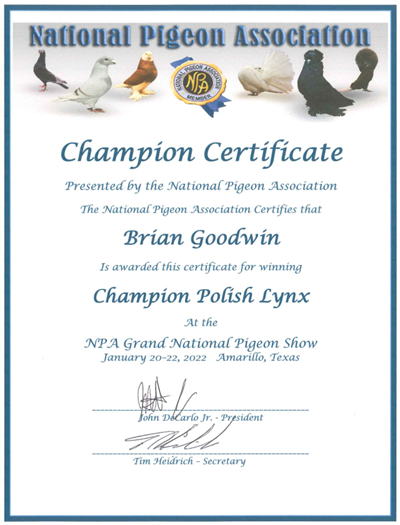 SUPERIOR to HIGHLY SUPERIOR on all birds.